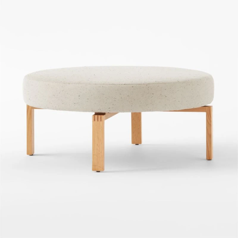 California design duo Lawson-Fenning’s appreciation of craftsmanship and honest materials comes through in low-slung ottoman. Boxy, angular base is made of oak certified sustainable by the Forest Stewardship Council ®, with solid wood legs coming together through exposed box joinery—a sign of high-quality detail borrowed from the Arts and Crafts movement. Atop the four legs, a circular cushion in soft, flecked fabric plays against the angularity elsewhere in the piece. CB2 exclusive.